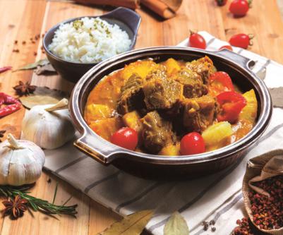 升级版咖喱牛腩精选优质咖喱粉,与众多进口香料以黄金比例精配而成。新鲜出炉的咖喱汁中带着幽幽的椰香味与苹果的清甜。瞬间,肉香、咖喱香环绕,咖喱汁渗透入香甜米饭,色泽撩人,令人食欲大增,回味再三!